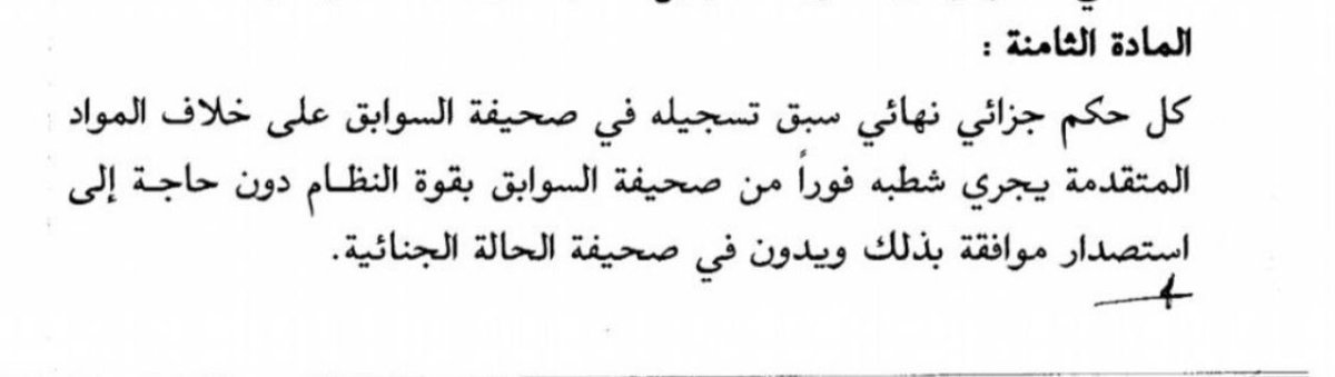 صحيفة السوابق:هي صحيفة تسجل بها الأحكام الجزائية النهائية إذا تحققت الشروط الآتية