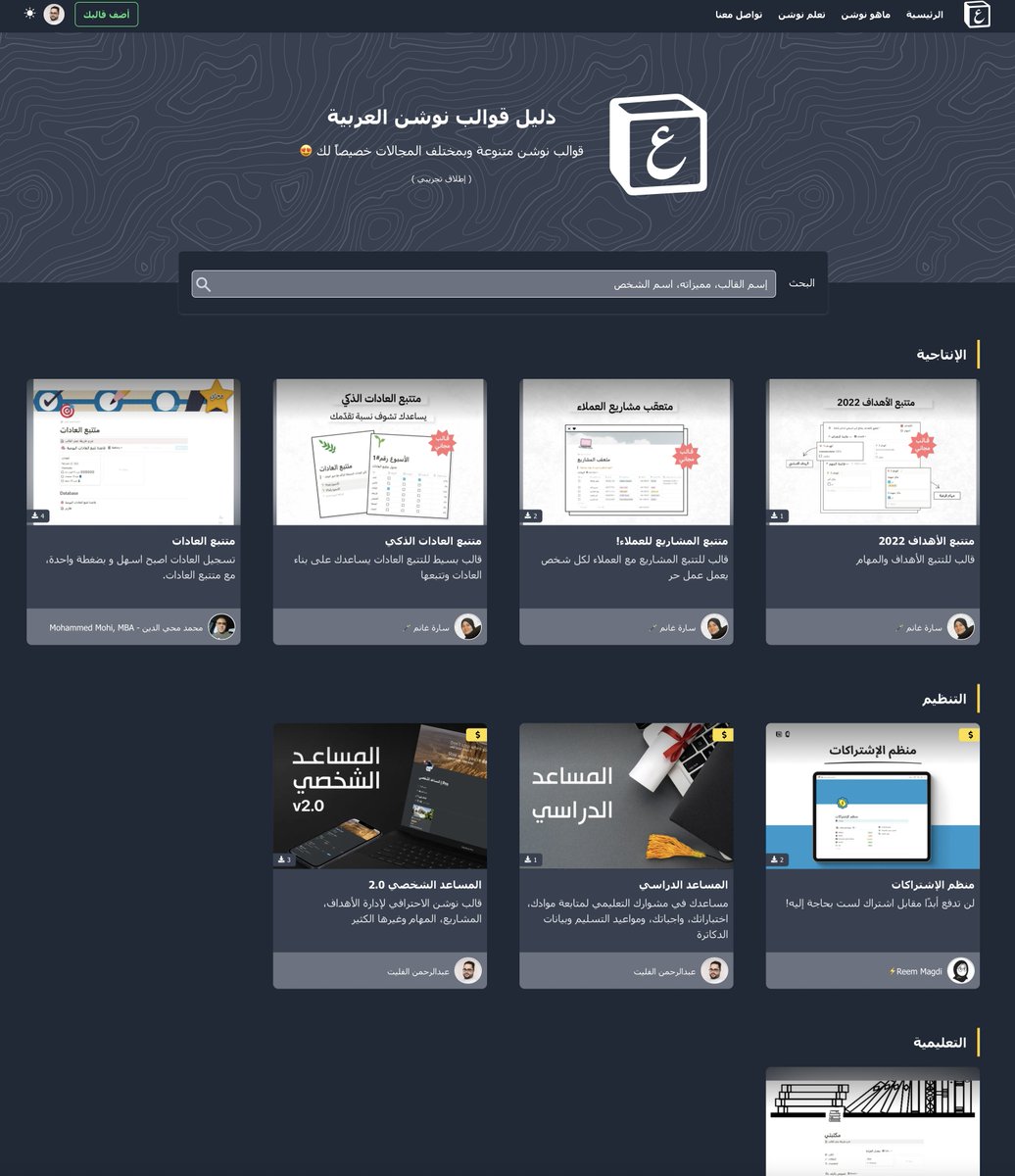 ومن دون تطويل زيادة حياكم الله في منصة قوالب نوشن العربية 🥳😍🤩
