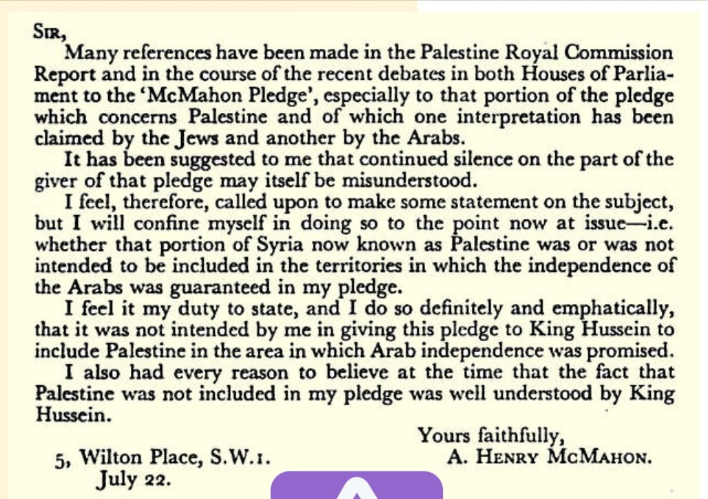 وفي عام 1915 وأثناء الحرب العالمية الأولى دخلت بريطانيا في مفاوضات مع العرب لتشجيعهم على التمرد على الإمبراطورية العثمانية مقابل إقامة دولة عربية موحدة في المناطق العربية من الدول العثمانية