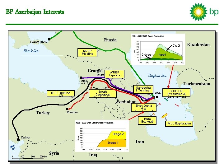 تواجد بي بي او بريتيش بتروليوم في روسيا كان منذ ايام الاتحاد السوفيتي. و بعد انهيار السوفييت اصبحت بي بي متواجدة بشكل رئيسي في روسيا و أذربيجان علما ان التواجد الاستراتيجي لشركة بي بي هو في مشروع خط الانابيب من أذربيجان الى الأبيض المتوسط