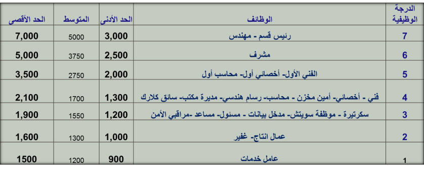 ◀️ الراوتب في الجدول السابق ليست إلا مجرد مثال تقريبي وتتباين رواتب كل درجة وظيفية وفقا لاستبيان الرواتب في السوق SALARY SURVEY و قدرة المؤسسة المالية .