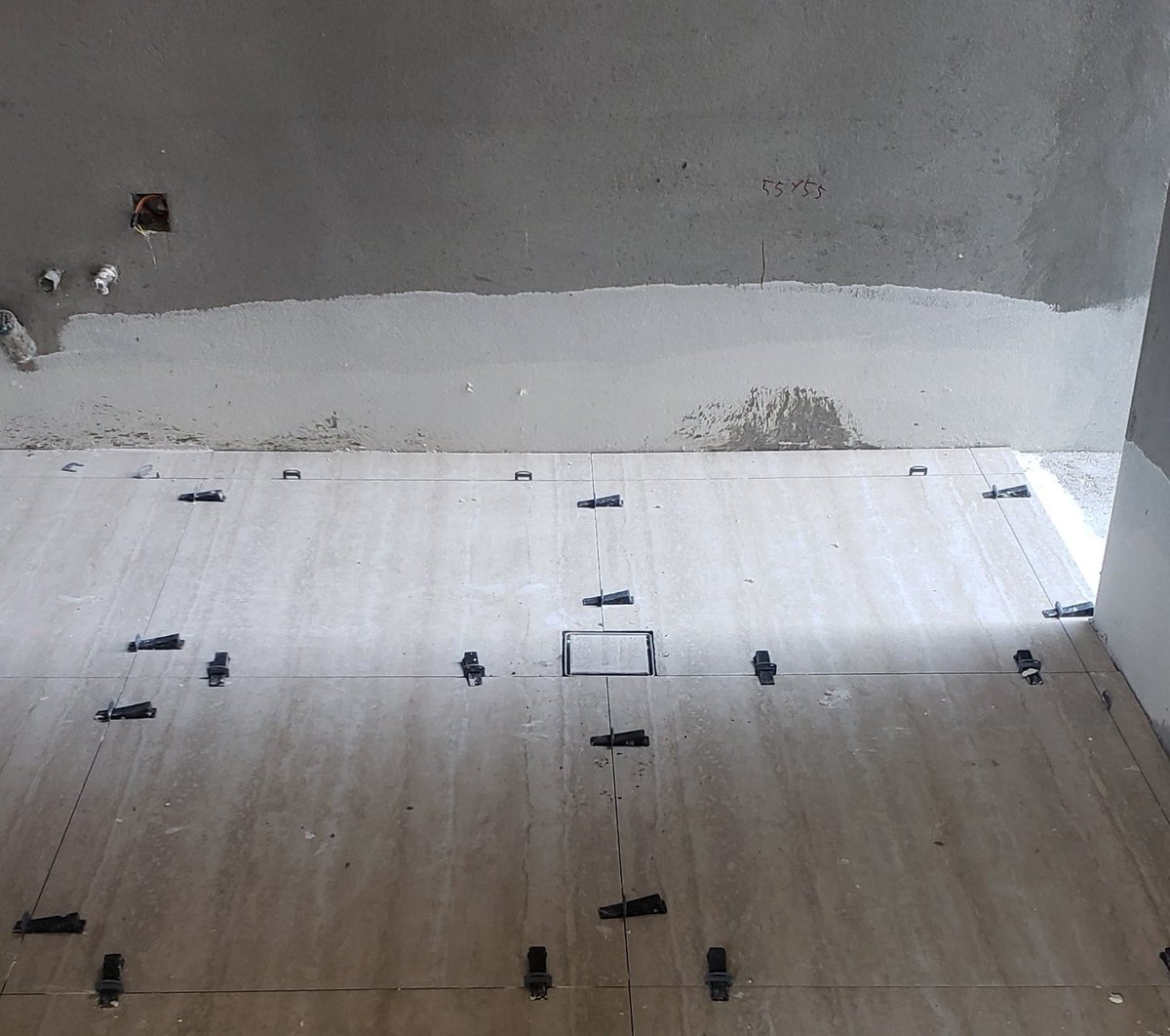 وتبقى جزء من البلاط الخارجي والداخلي+ والعزل للارضيات + والدهان + والحجر + والالمنيوم للنوافذ + والابواب الحديد الخارجية والابواب الخشب الداخلية + المصعد + وتركيبات السباكة والكهرباء + التكسيات فقط