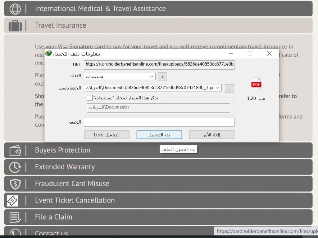 اختر تأمين السفر ( Travel Insurance ) واضغط على تحميل من كلمة ( Here ) وحمل الوثيقة
