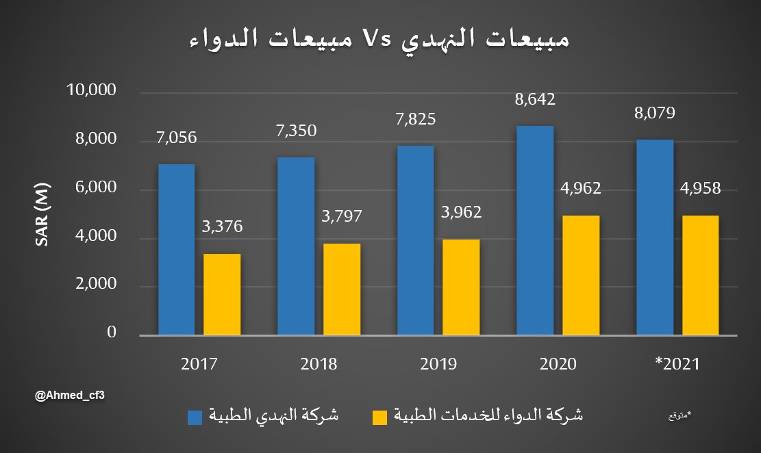 صحيح ان شركة النهدي تبدو افضل في اغلب المؤشرات المالية، لكن يجب وضع التقييم والفرص المتوفرة للتحسن والنمو في صيدلية الدواء في عين الاعتبار ايضاً، مثلاً معدل النمو السنوي (CAGR) لاخر 5 سنوات في إيرادات الدواء حوالي 7% في حين ان النهدي 3% تقريباً، يتبع ….