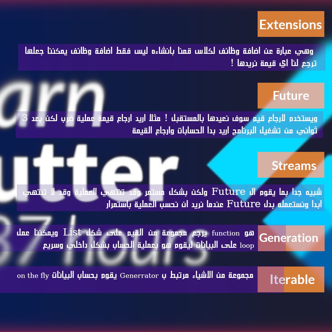 🔻بداية احب اقدملكم ما سنتعرف عليه في الاشياء المتقدمة في الدارت بشكل ملخص كما ترون ثم ناتي لكتابة الكود وشرحه