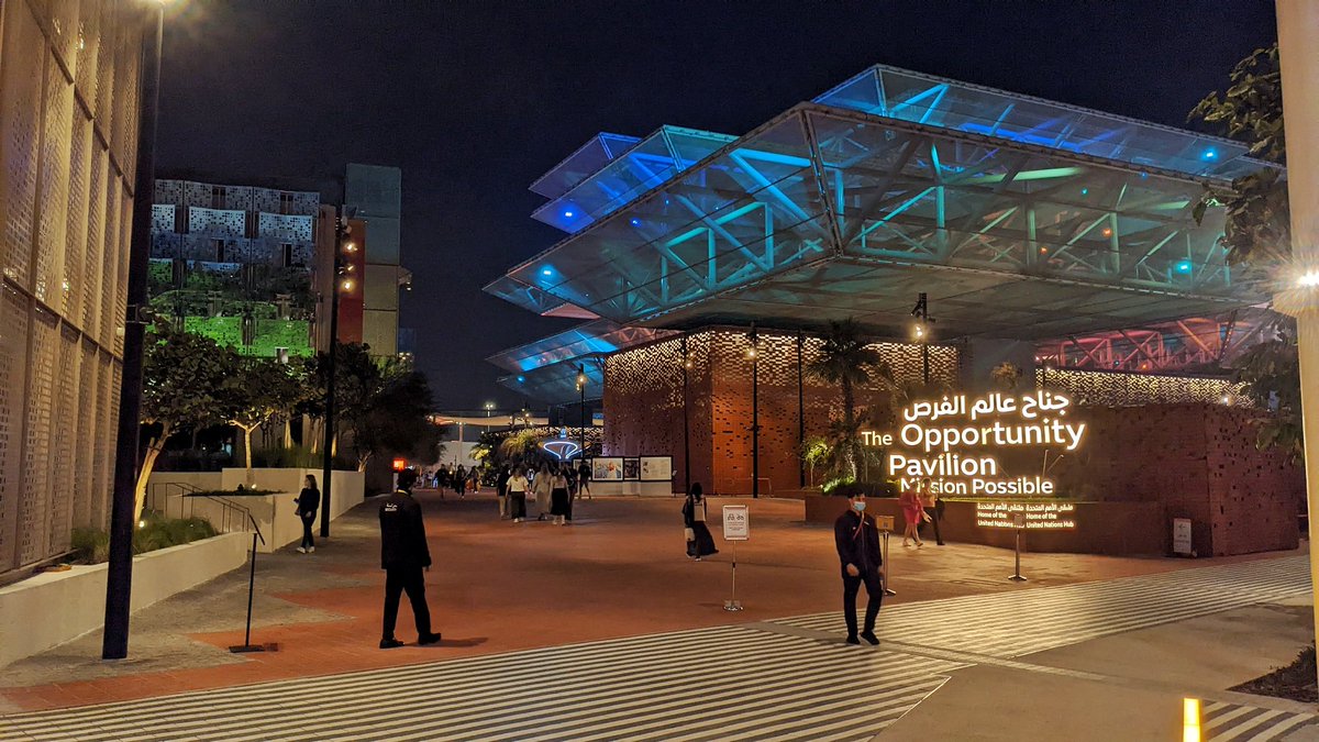 جناح الفرص في #إكسبو2020 يضم أقساما مختلفة مثل عالم الفرص وملتقى الأمم المتحدة وبيت الهامور. يتميز المبنى بساحاته المستوحاة من الأفنية العربية القديمة، واستخدام طين التراكوتا المستدام في أرضياته وواجهاته.