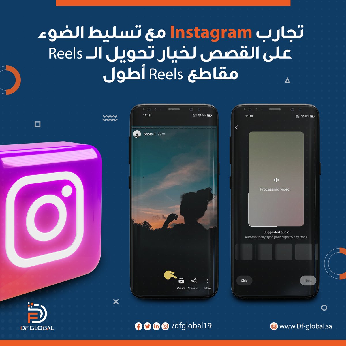 تجارب instagram مع تسليط الضوء على القصص لخيار تحويل الـ Reels لمقاطع أطول