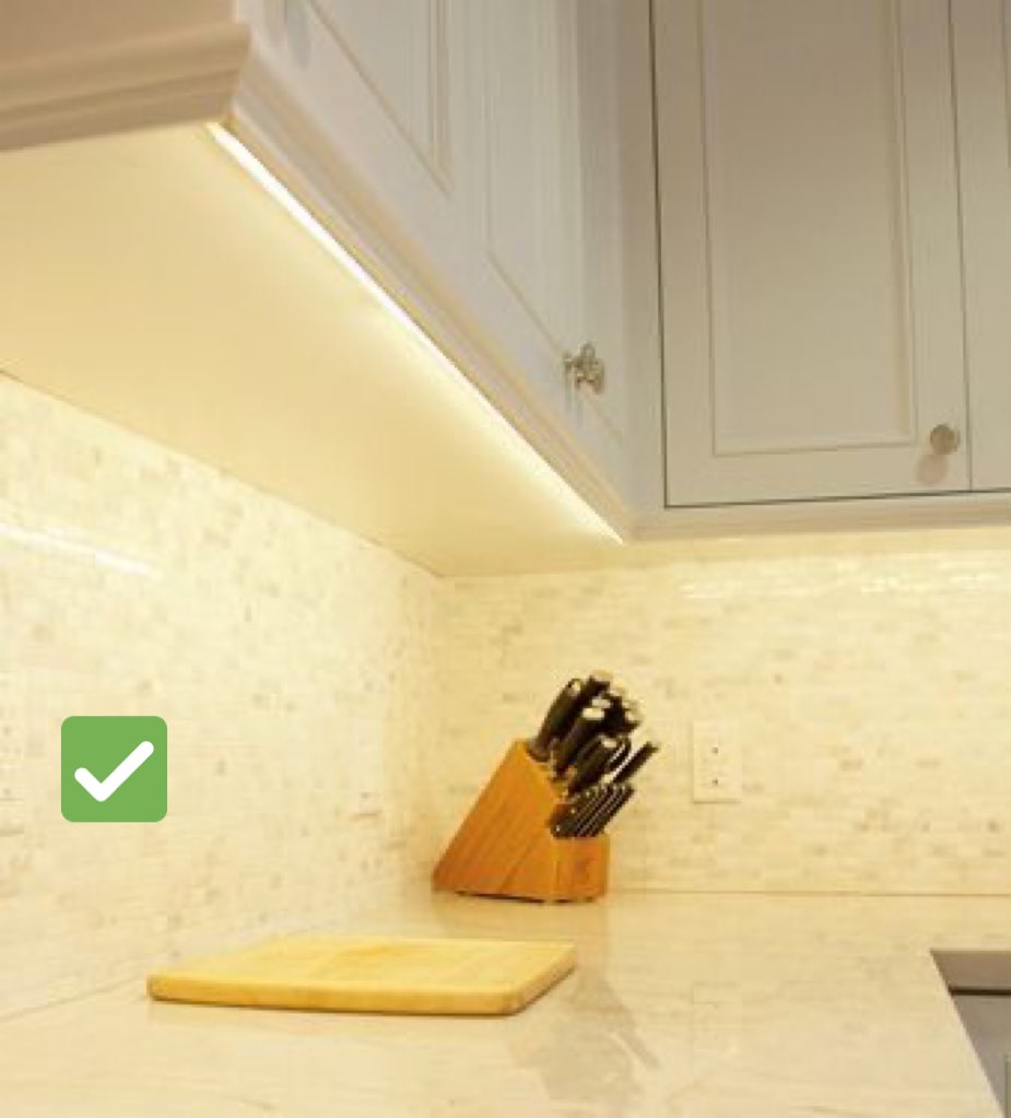 ضروري يكون بُعد الكشافات عن الجدار تقريباً متر ، عشان نضمن انها م تضيع فوق خزائن المطبخ العلويه وتكون اضاءتها ممتازه في المكان ✅