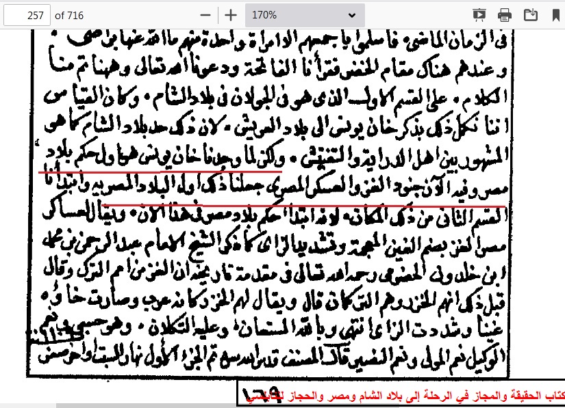 وبعده بقرنين قال النابلسي في كتابه "الحقيقة والمجاز في الرحلة إلى بلاد الشام ومصر والحجاز" (القرن 12 ه 17 م) أيام الاحتلال العثماني
