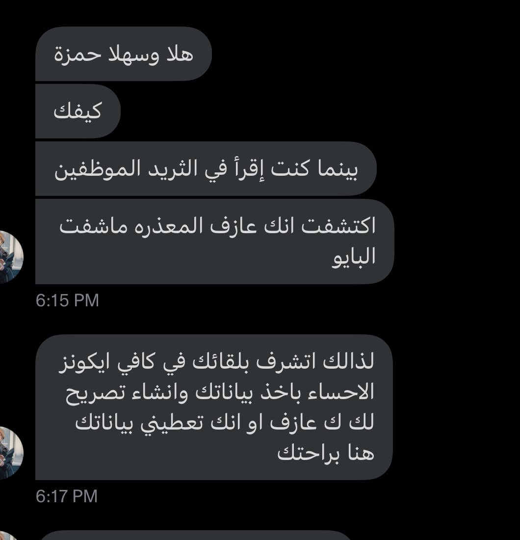 بالأمس كنت في مقهى مع صديقي @N1528Almousa وكنت أحدّثه عن ما جرى معي، وكان يستمع وعيونه تقول لي (توك ماشفت شي)، قال لي: في كل بيئة وكل مكان وزمان، سوف تجد شخصًا يَحفِرُ لك حُفرةً فيجب أن تكون مُتيقِّضًا ومنتبهًا لأيّ طعنة قد تسدد لك بظهرك.