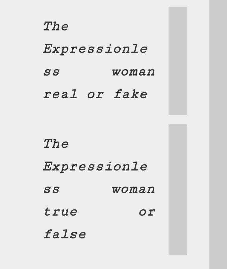 الناجية الوحيدة من الحادثة كانت تلك الطبيبة التي فرت حين ابتسمت المرأة، وهي التي أطلقت على المرأة الأسم الذي اشتهرت به لاحقا وهو "المرأة من دون تعابير" The Expressionless