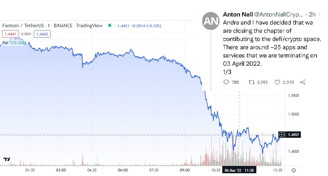 أعلن المطور @AntonNellCrypto ايقاف ما يقارب من 25 مشروع علي شبكه Fantom.