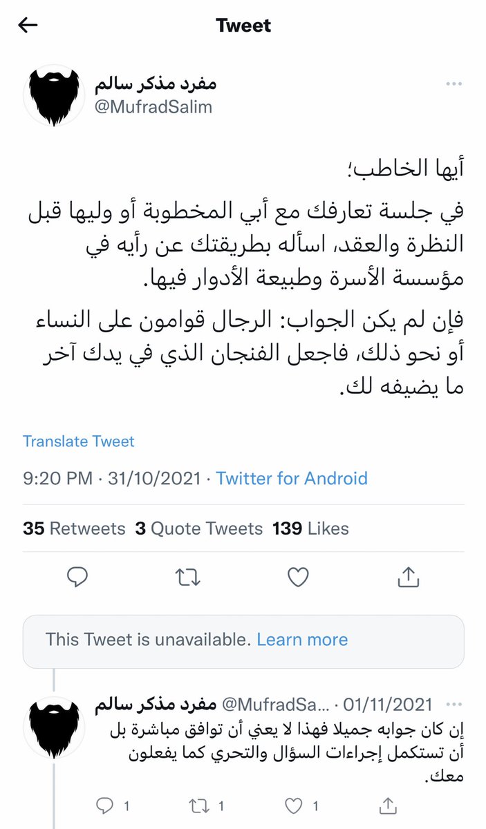 • أيها الرجل إن لم تجد ما يحفظ لك دينك وكرامتك ومالك وأسرتك المستقبلية فعزوف الزواج أبرك وأنفع لك ولصحتك ودعهن في بيوت أهليهن أو بيوتهن المستقلة تغشاهن العنوسة والشيخوخة والتعاسة والعفن.