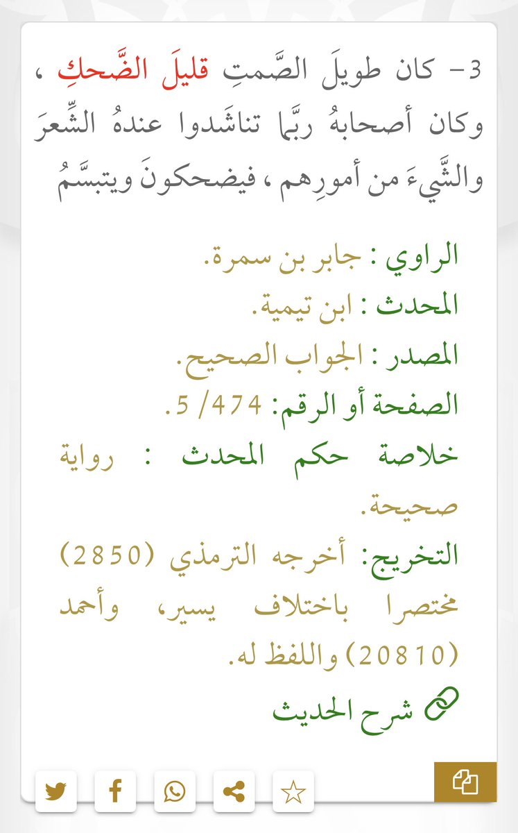بقيت امور كثيرة لم اذكرها حتى لا أطيل إطالة شديدة في هذا الثريد ومنها إعظامه لنعمه الله عليه ، كيفية أكله ،صبره على الجوع ، تواضعه، صبره على شدة العيش ، زهده في المال، لطفه مع من أساء الطلب ، معونته لأهله ، وفائه لزوجه ، رفقه بالنساء ، رحمته بالاطفال ، ملاطفته للإطفال