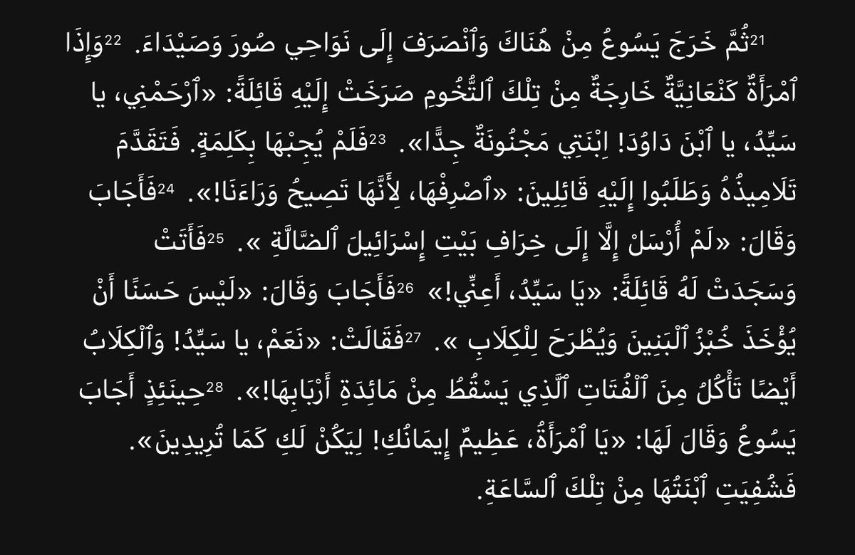 يقول الناقد دونالد أ. هانغر أستاذ العهد الجديد في fuller theological seminary : الألفاظ التي قالها يسوع من أشد الألفاظ التحقيرية في المعجم اليهودي المصدر [Donald A. Hagner, Matthew, 1/171 (Quoted by Michael F. Bird, Jesus and the Origins of the Gentile Mission, (New York: T