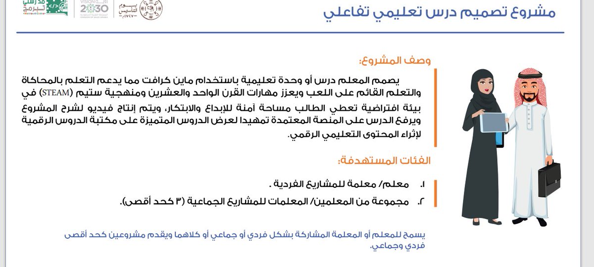 مشاركتك تكون بتصميم درس تفاعلي باستخدام ماين كرافت
