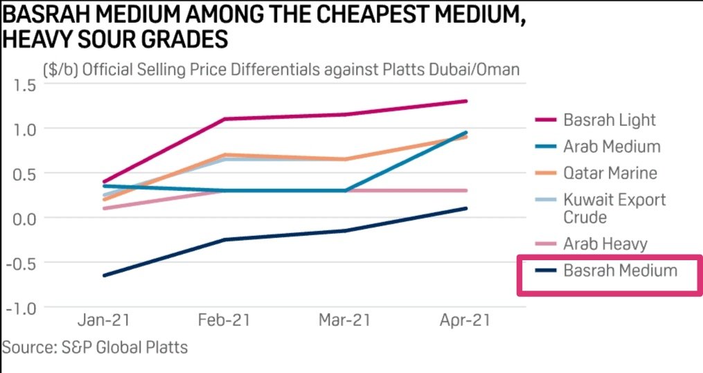 ☑️اسعار نفط البصرة المتوسط هي ارخص نفوط المنطقة وقريب من سعر(النفط العربي الثقيل Arab Heavy oilالسعودي)