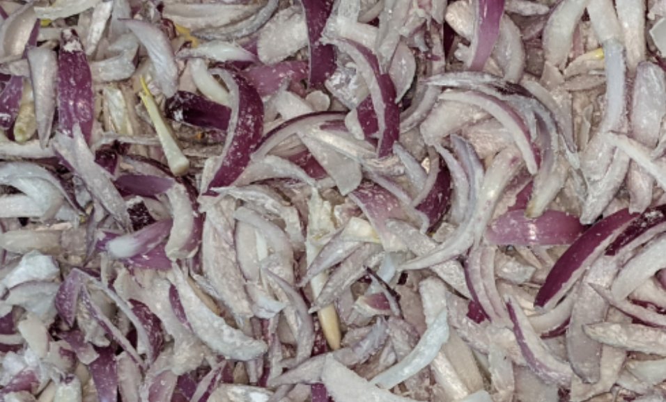التقلية دي وسط مابين البصل المكرمل ومابين التقلية بتاعة المحلات. فيها تسكيرة خفيفة ولحمة البصل لسه جزء منها موجود في النص زي ما احنا شايفين وكرسبي من الجناب. طعمها جنان