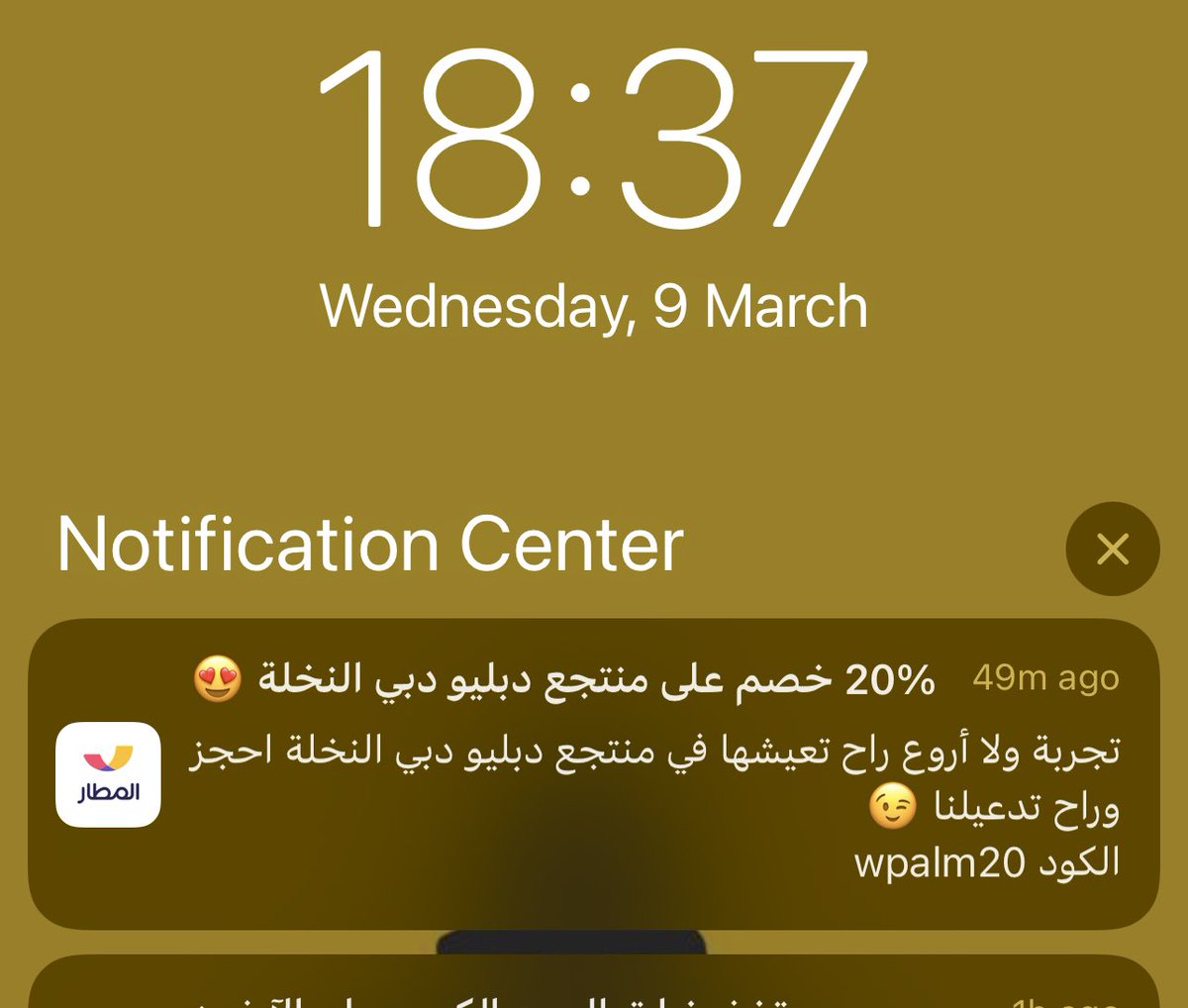 وصلني إشعار من تتطبيق المطار خصم ٢٠٪ على منتجع دبليو دبي النخله فرصة للإستفادة