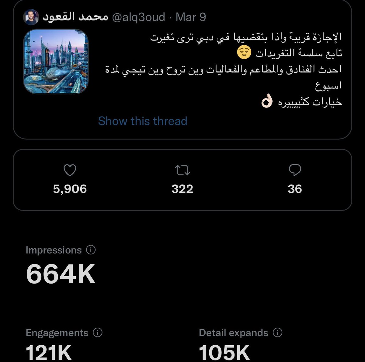- التفاعل مع الثريد حتى كتابة هذي التغريدة اكثر من ٣٥٠ الف تفاعل ووصول