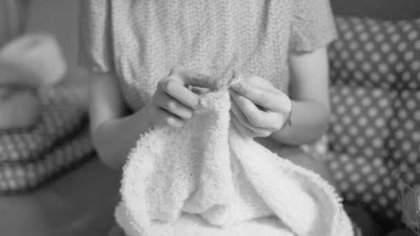 تركت الام ابرة التريكو لتداري بيدها دمعة من عينها