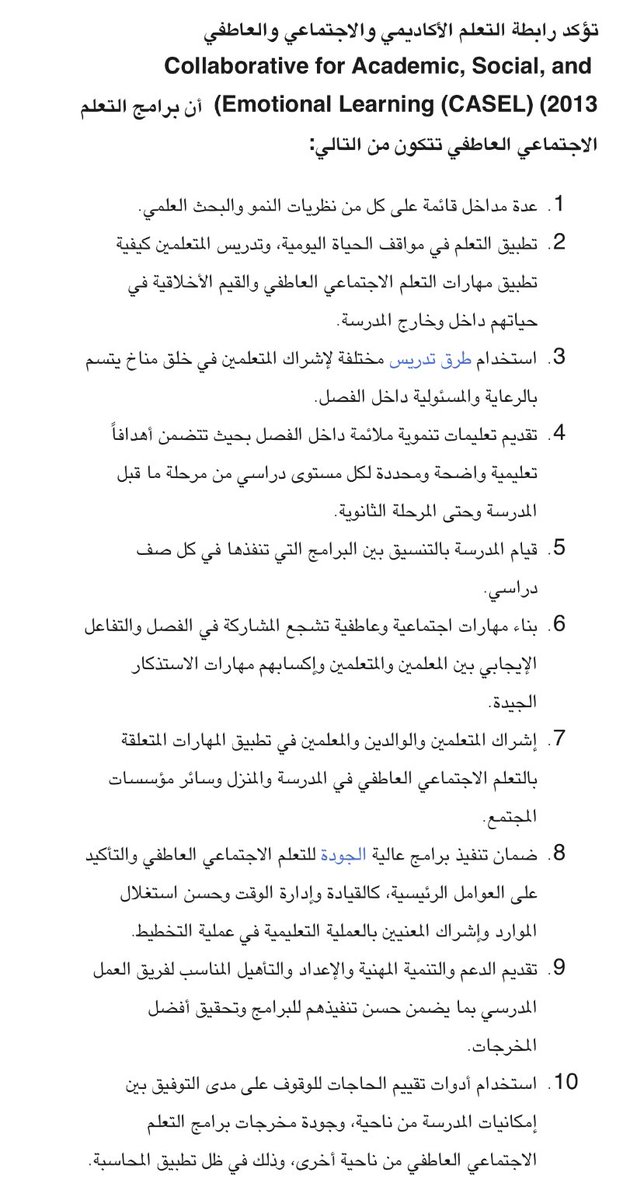 تبني التعليم الاجتماعي العاطفي ودعم المناهج والانشطة ببرامجه.