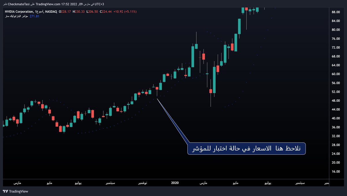 مؤشر تابع للإتجاه يكون على شكل نقاط أسفل و أعلى الشموع .. ما هاذي النقاط و كيف التعامل معها؟