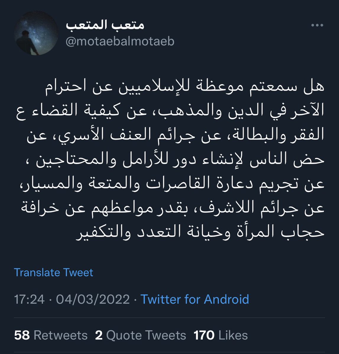 هل سمعتم عن موعظة؟ لم نسمع عن موعظة وحسب بل سمعنا وقرأنا في كتبنا، ولم يترك علماء المسلمين شاردة وواردة إلا وتم إيضاحها، لكن امثالكم لايتثقفون ولا يتفكرون بل ولا يبحثون اصلًا.