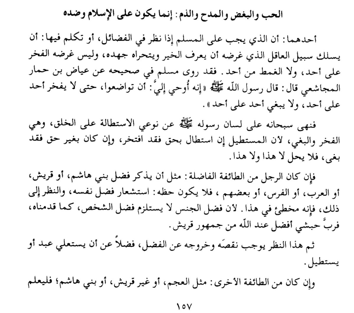 لأن فضل الجنس لا يستلزم فضل الشخص كما قدمناه فرب حبشي أفضل عند الله من جمهور قريش ثم هذا النظر يوجب نقصه وخروجه عن الفضل فضلاً عن أن يستعلي بهذا أو يستطيل ، فإنه لا ريب أن في النساء من هو أعقل من كثير من الرجال