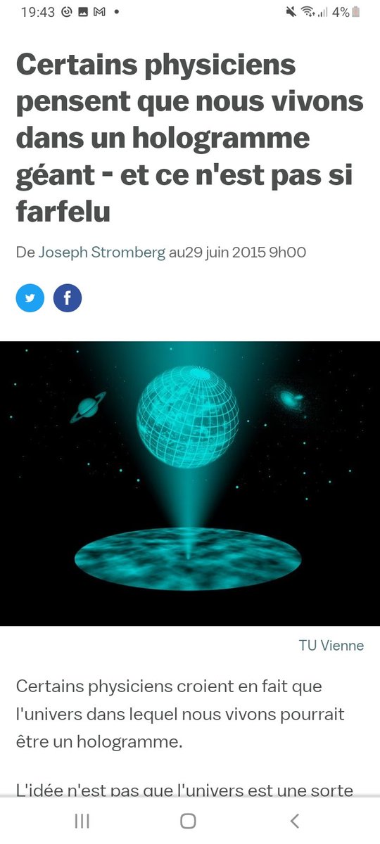 Scientifiques et physiciens affirme aussi, Elon Musk à aussi affirmer la possibilité selon lui qu'on vive dans une simulation une réalité Holographique, de plus en plus de données tend vers ça, je vous conseille le livre l'illusion de la réalité de Icke pour plus d'info sur ça
