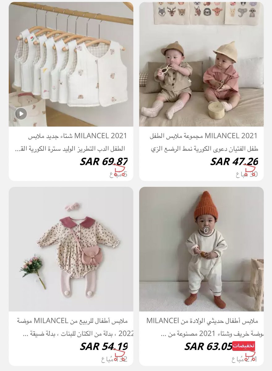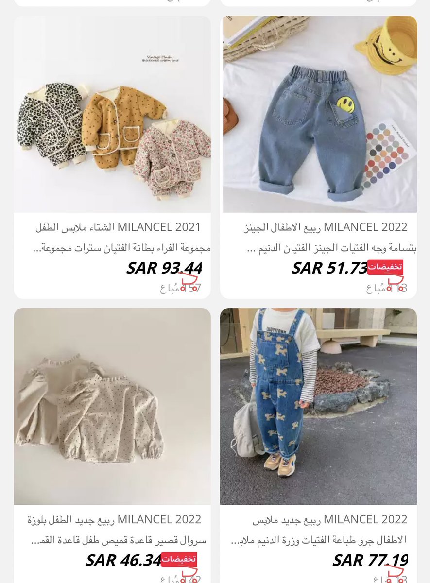 هذه صفحة البياع وهذا جزء بسيط من اللي عنده اي احد يبغى ملابس اطفال لاتتعدونه سواء بنات او اولاد حتى محطوط عند اسمه وسام اذا دخلتوا صفحته s.click.aliexpress.com