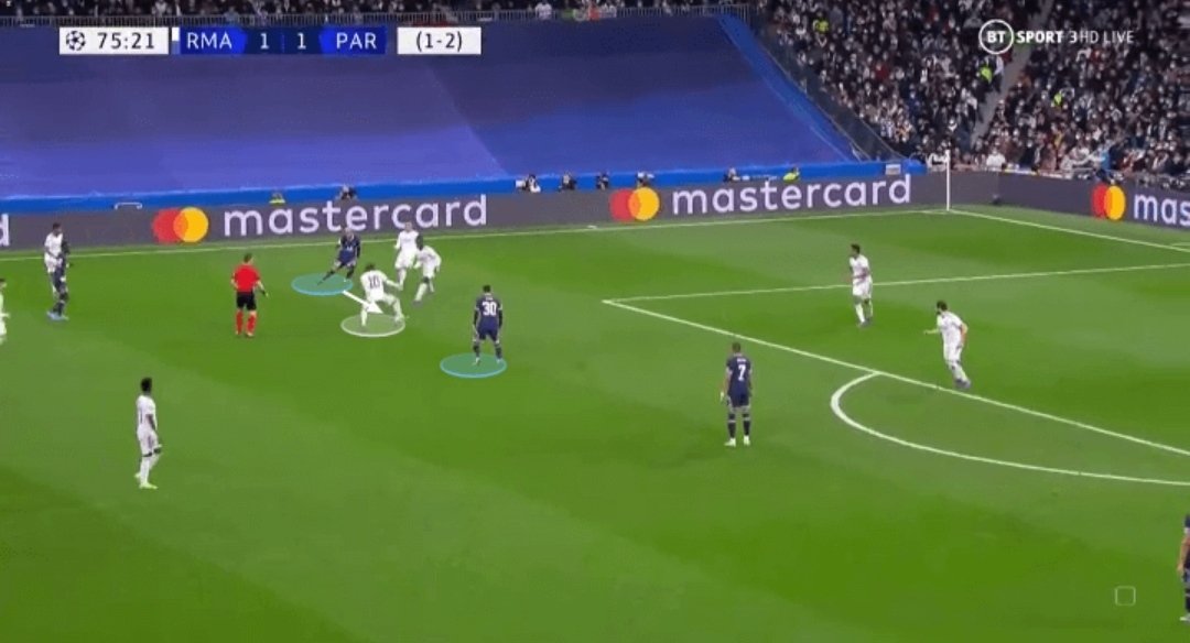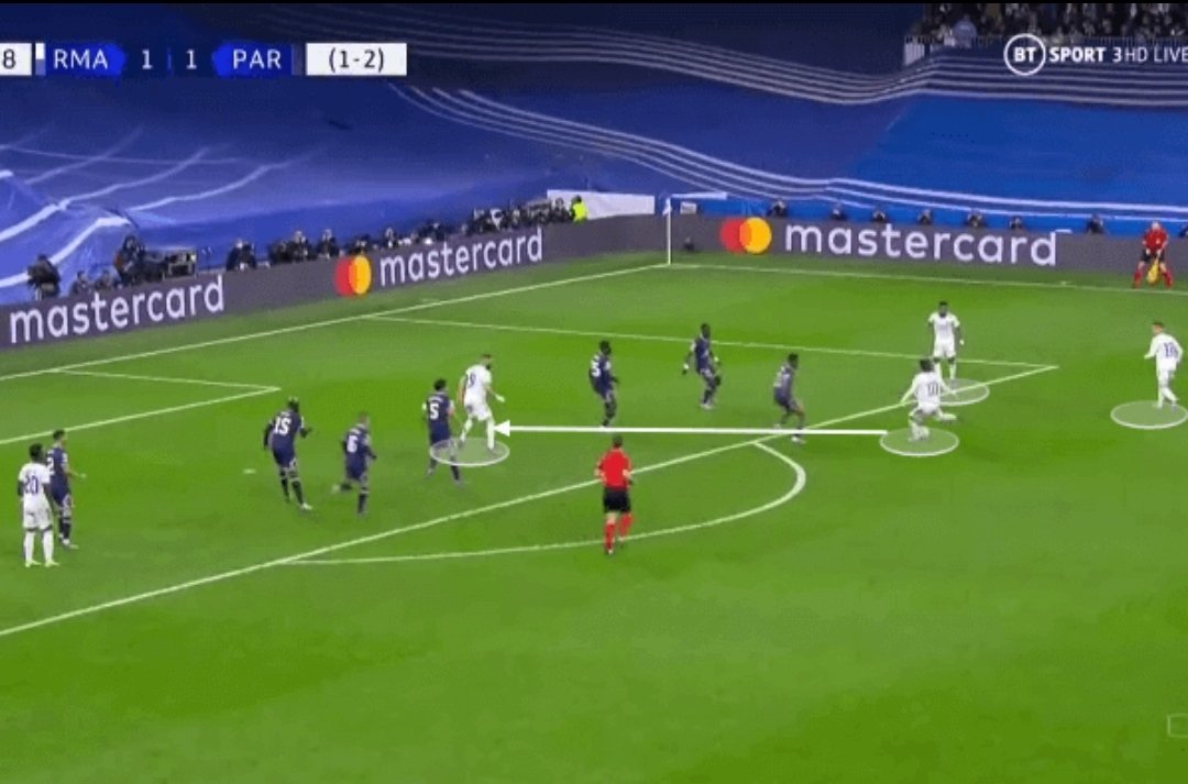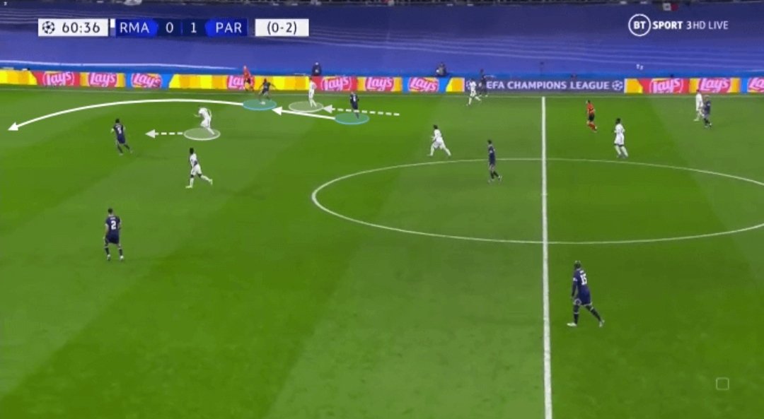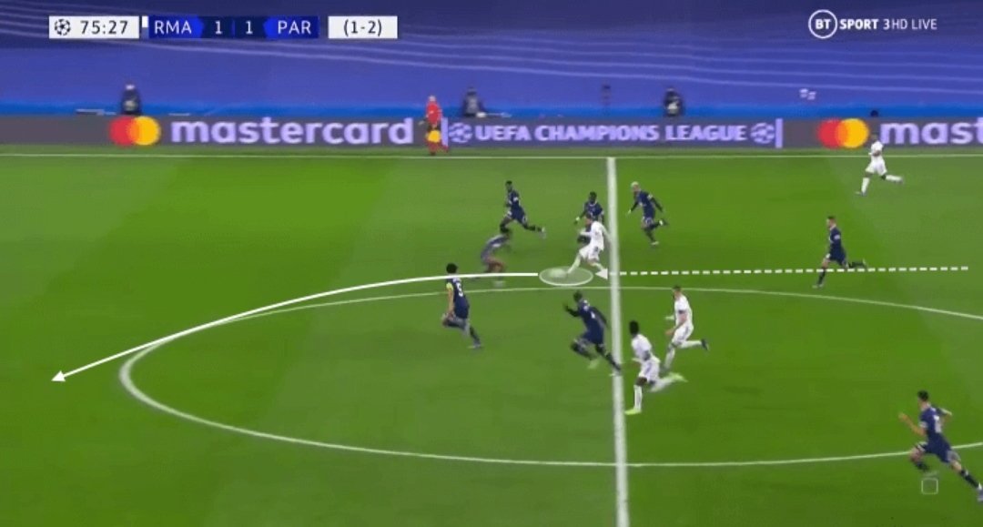 كامافينغا لعب نفس دور كروس تقريبًا لكن وفر حيوية أكبر في مواجهة المرتدات ومع عودة باريس أكثر للخلف، استغل أغلب لحظات امتلاكه للكرة.