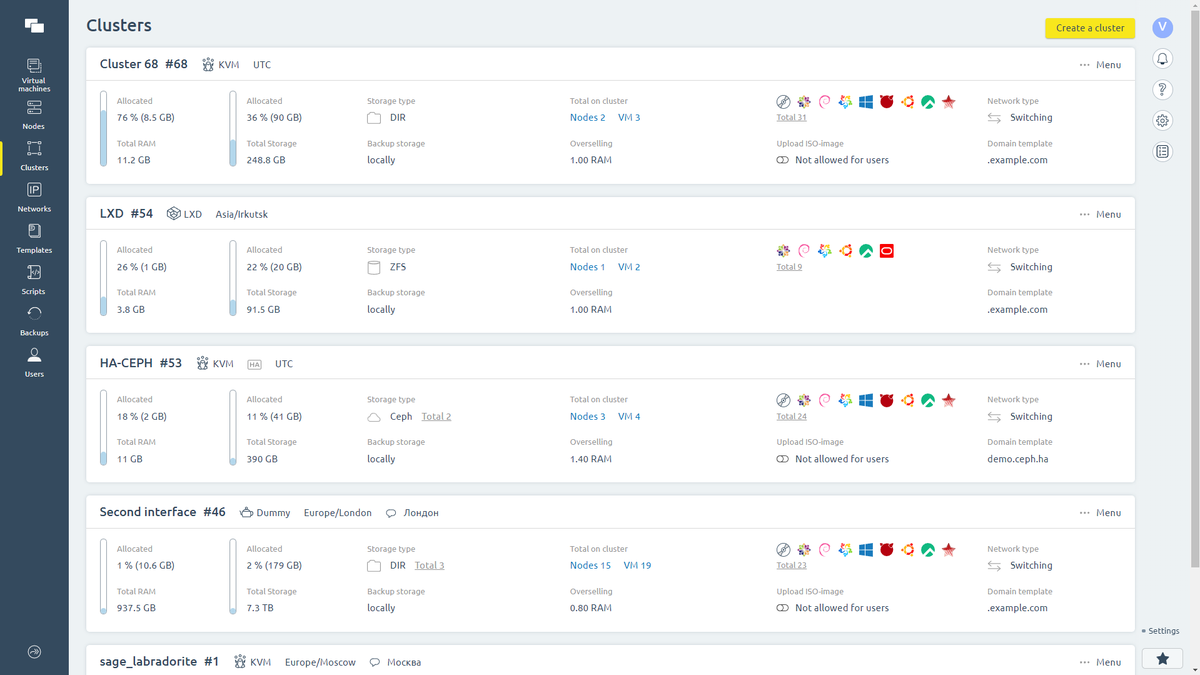 يهدف بشكل أساسي KVM VMS، ولكن يدير أيضا Xen و LXC (حاويات Linux).