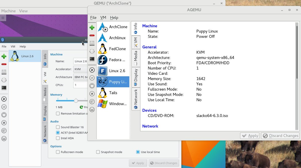 هو واجهة المستخدم الرسومية للآلات الافتراضية باستخدام qemu باعتبارها الخلفية. يتم توفير دعم مسرع KVM على Linux. يحتوي التطبيق على واجهة سهلة الاستخدام ويسمح بتعيين عدد كبير من الخيارات.