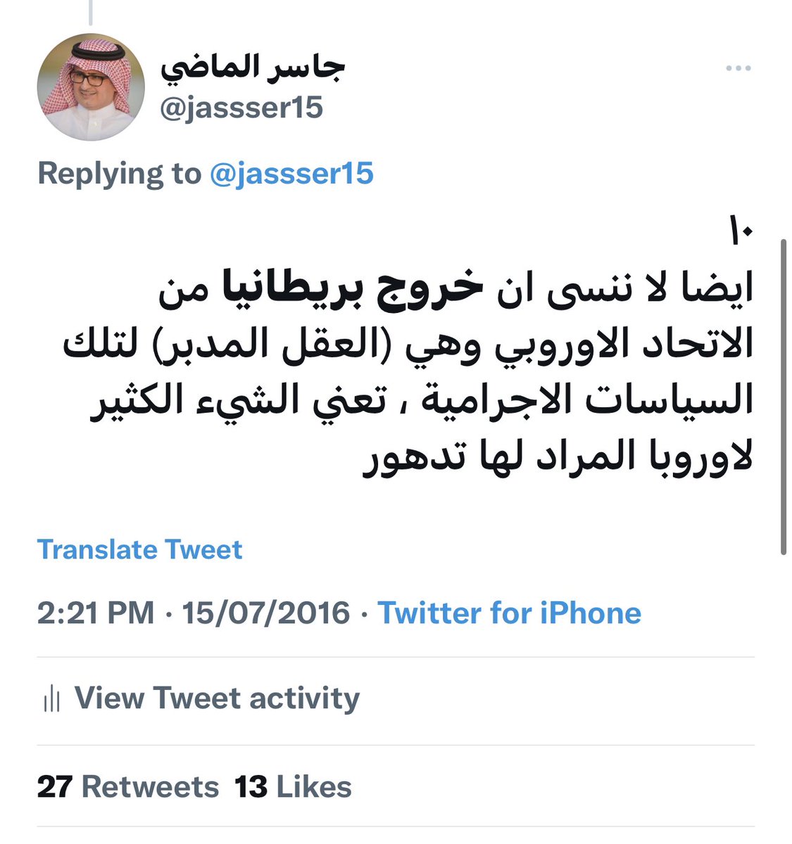 ومن المؤكد ان البعض منكم يسال عن الدور السعودي بشان هذا الفخ العظيم ولكي اجيب على هذا السؤال احيلكم لتصريح سمو الامير/ تركي الفيصل الذي اعتقد انه يعبر بطريقة غير مباشرة وغير رسمية عما تؤمن به قيادتنا إذ يقول سموه في وقت سابق: (نسمع كثيرًا عن تلاشي قوة امريكا ، وعن صعود الصين .