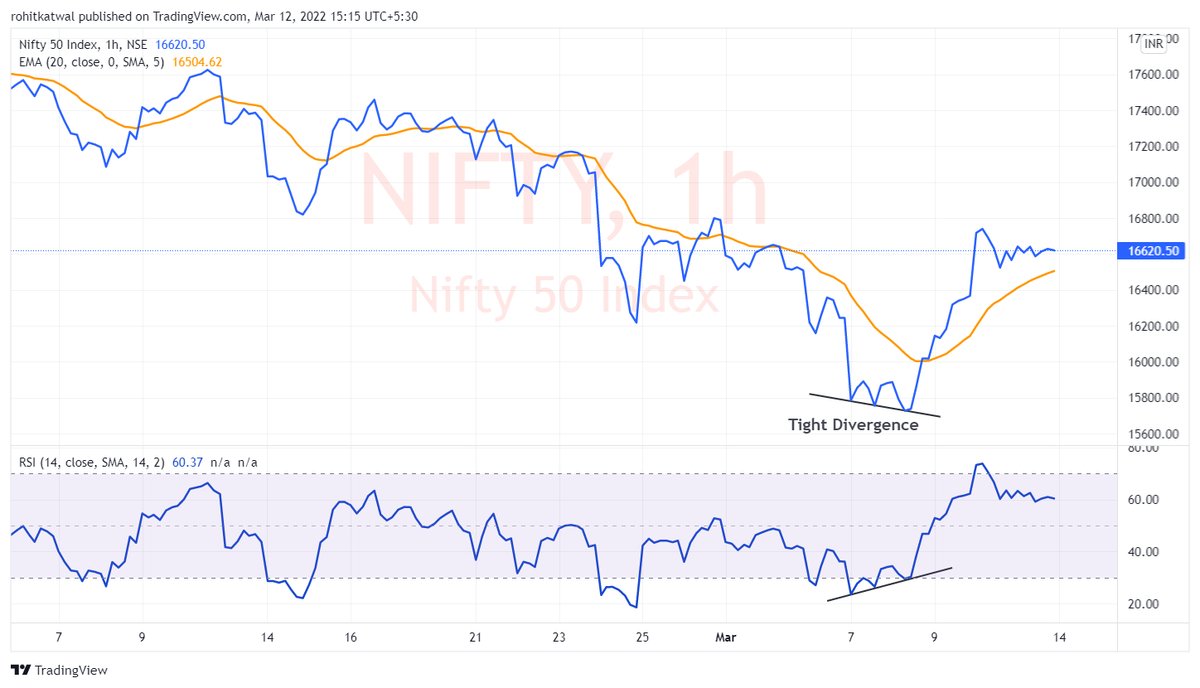 Tight Divergence - If you look at #Nifty Hourly chart, tight divergence is not visible. But when we change it to line chart, there is a tight divergence.