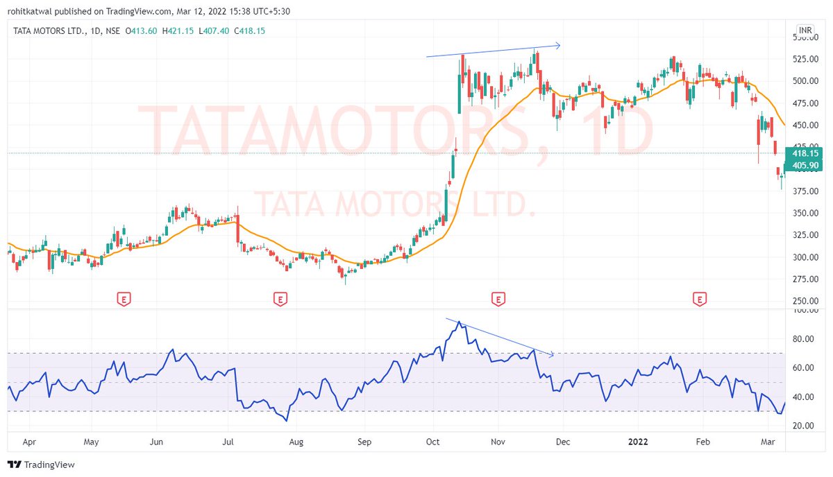 Consider #TATAMOTORS on daily charts. From 12 Oct to 18 Nov, price is making double top. There is a slight divergence on Daily Charts but no entry.
