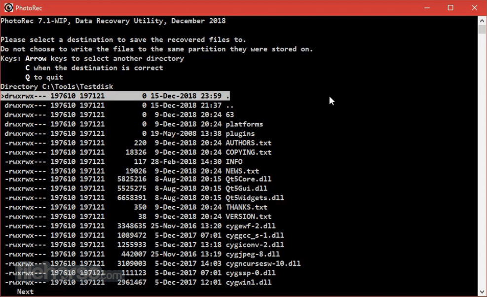 لمزيد من السلامة يستخدم PhotoRec الوصول للقراءة مع محرك الأقراص أو بطاقة الذاكرة ثم استرداد البيانات المفقودة.