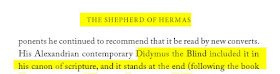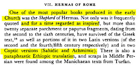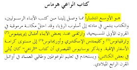 نذهب إلى كتاب الراعي لهرماس، الذي اعتبره البعض من أشهر الأسفار التي تقرأ في القرون الأولى، ومن الأسفار القانونية كذلك، ولا يوجد الآن ضمن أسفار العهد الجديد، بل أخرجت!
