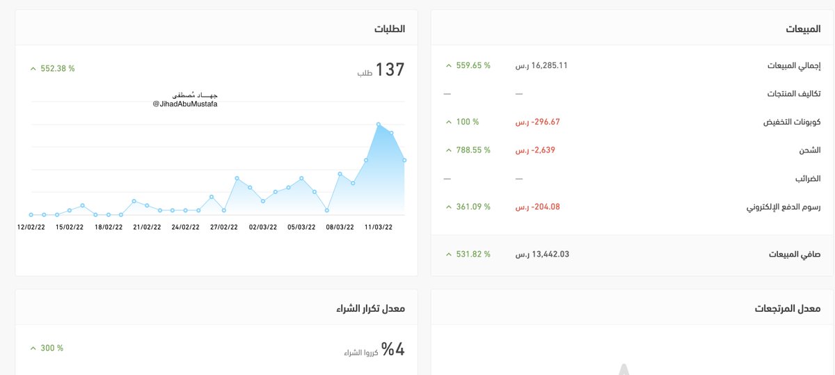 المتجر تضاعف إلى الآن أكثر من 400 %، وأتوقع نجاح أقوى باذن الله من هنا لنهاية الشهر.
