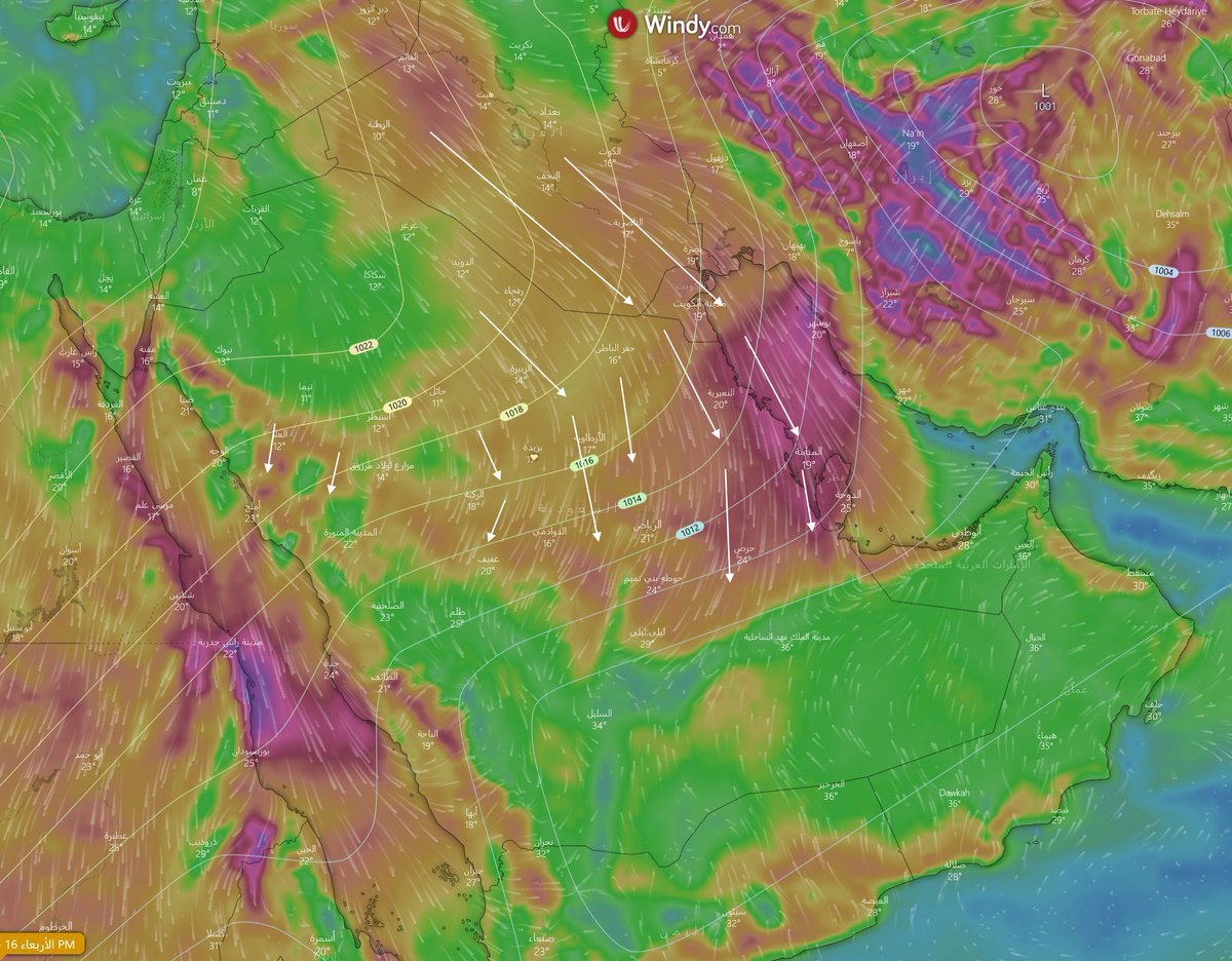 ⚠️وتصطدم بالكتلة الحارة والحارنة فوق السعودية منذ أيام، مما ينجم عن هذا الاصطدام