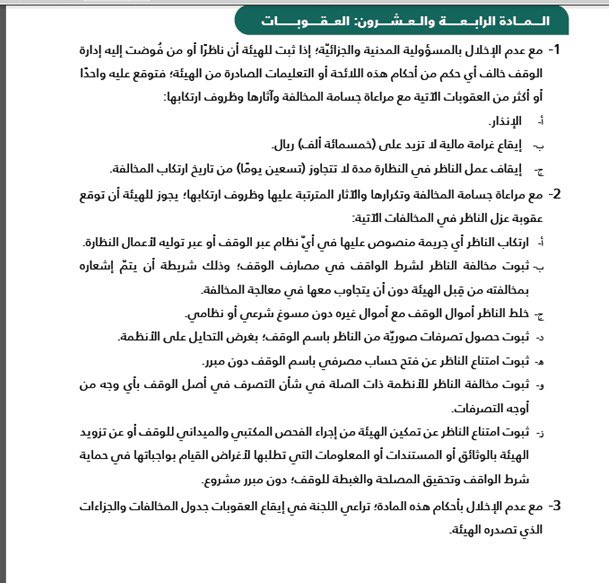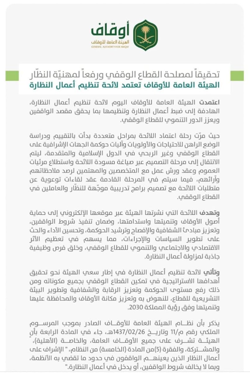 والزمت في المادة 21 الناظر بتزويد الهيئة بنسخة من 👇