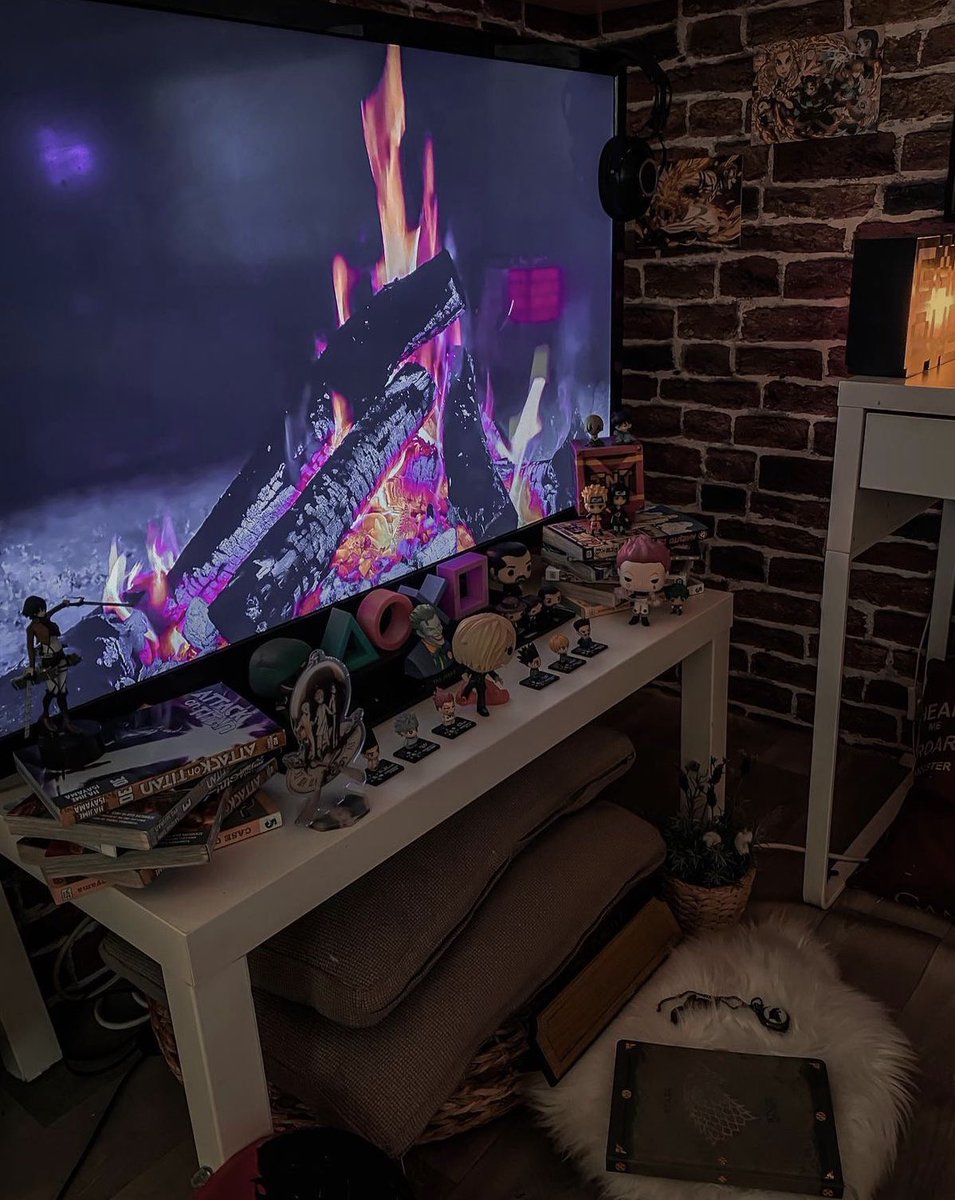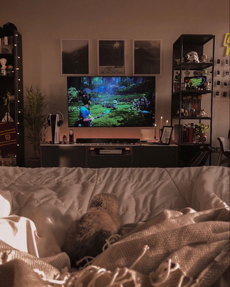 سابعاً | رفوف للتلفاز، فيه خيارات كثيرة ولكن هذي الرفوف هي خياري الأول خصوصًا وإني ما أحتاج مساحة واسعة للتلفاز لذلك اُفضل هذي دائمًا، من إيكيا 🍂