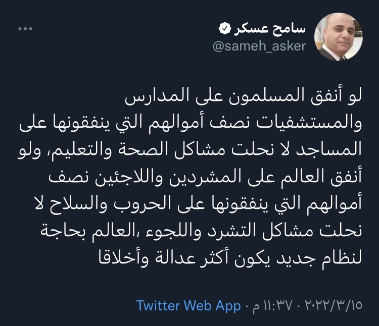 ثم ينظر لسجادة رخيصة الثمن في غرفة نومه ويقول: يا أخي ماهذا؟ اتق الله! صل على الأرض! بطون الفقراء أولى بقيمة هذه السجادة!