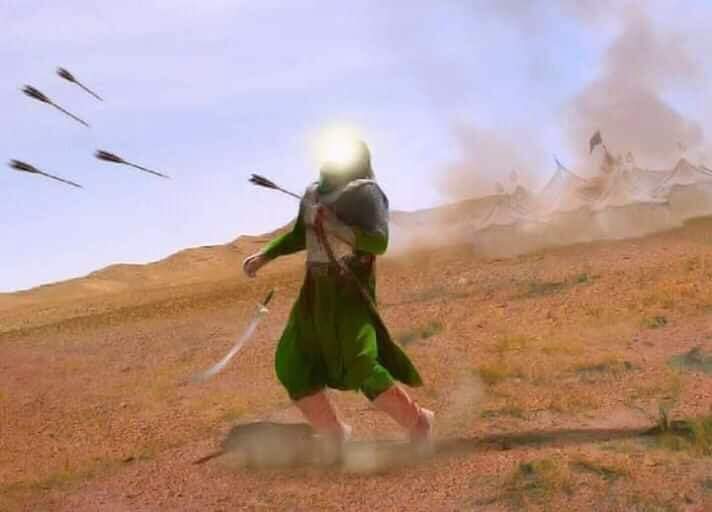 وبينما هو مشغول بالدفاع عن حبيبه يلمح طلحة سهما متجها إلى رسول الله مباشرة فيسرع باتجاه النبي ويمد يده أمام جسد النبي الطاهر ليفتدي بيده جسد النبي صلى الله عليه وسلم .👇🏿