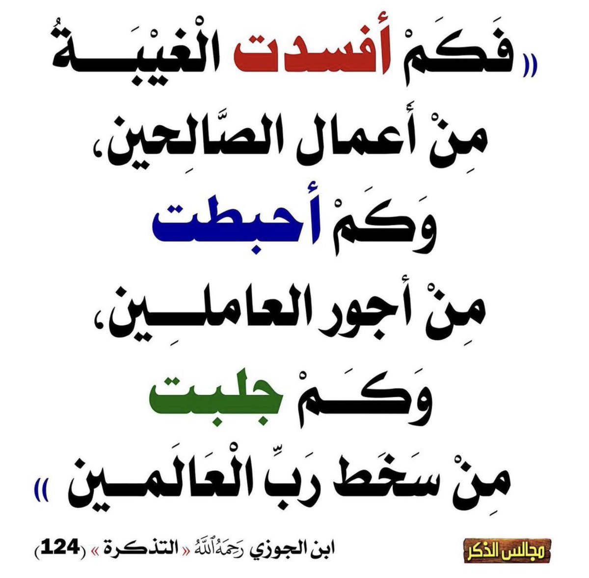قال ابن عبَّاس رضي الله عنهما: (اذكر أخاك إذا غاب عنك بما تحب أن يذكرك به، ودَع منه ما تُحِبُّ أن يَدَع منك)