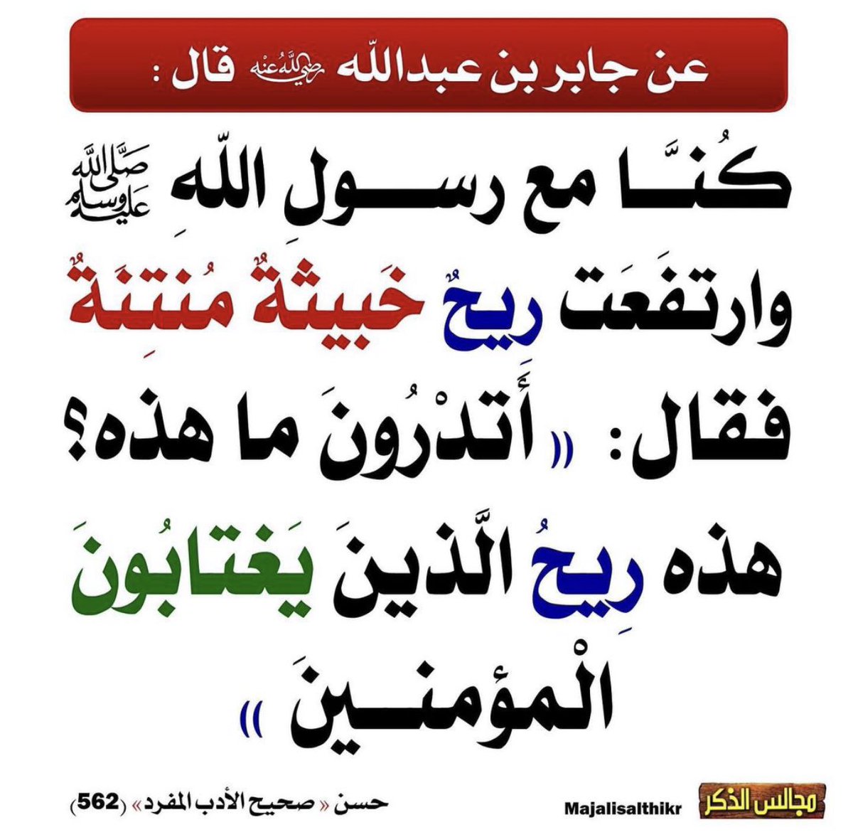 - وعن عمرو بن العاص رضي الله عنه، أنَّه مرَّ على بغل ميِّت، فقال لبعض أصحابه: (لأنْ يأكل الرَّجل من هذا حتَّى يملأ بطنه، خيرٌ له من أنْ يأكل لحم رجل مسلم)