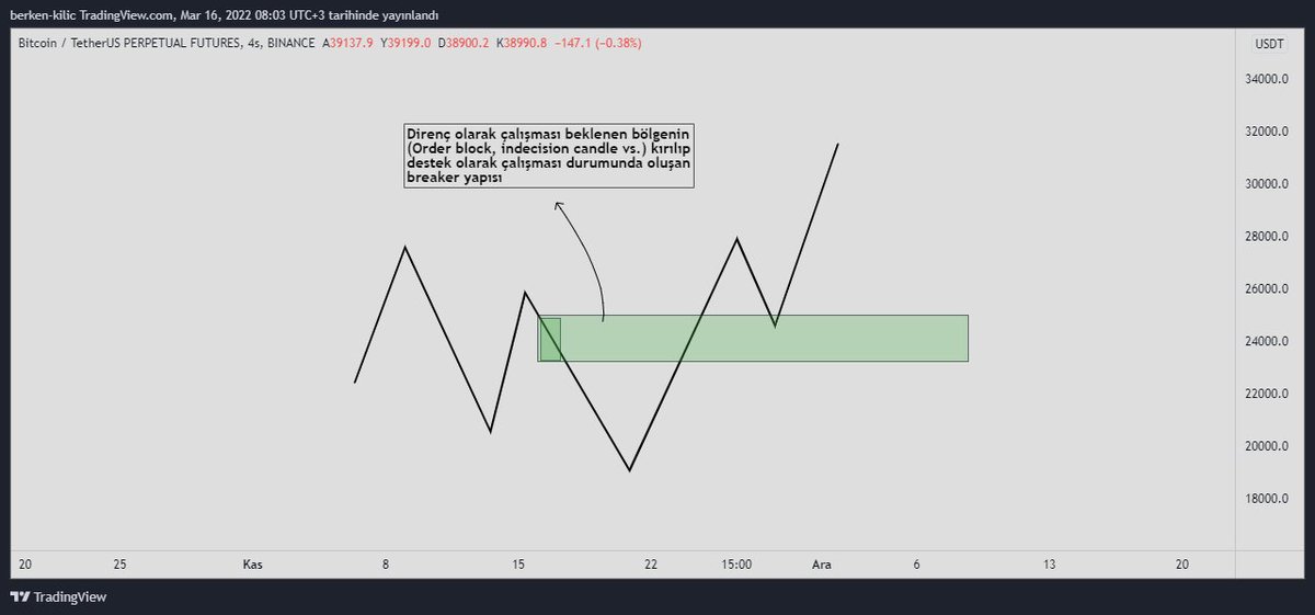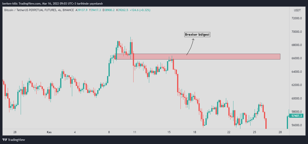 Şimdi konsepte geçebiliriz. Breaker bölgeleri üstte de bahsetmiş olduğum üzere destek veya direnç olarak çalışmasını beklediğimiz bölgelerin çalışmayıp kırılması ile oluşan yapılardır. ++