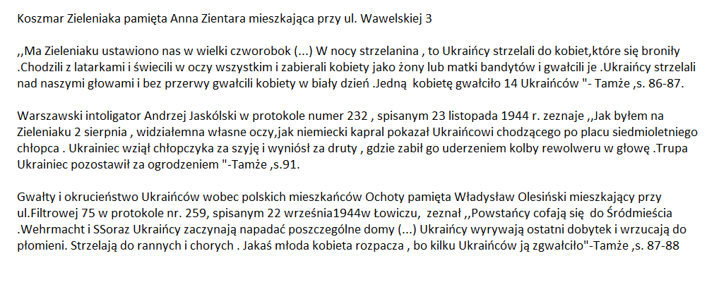 Ukraińcy w swej historii kolejną kartę zapisali krwią Polaków tuż po napadach na Polskich żołnierzy 39 r . ,poprzez Wołyń , Małopolskę Wschodnią ,Lubelszczyznę przyszła kolej i na Warszawę i PW w którego zdławieniu brali czynny udział . Jest wiele 1/16