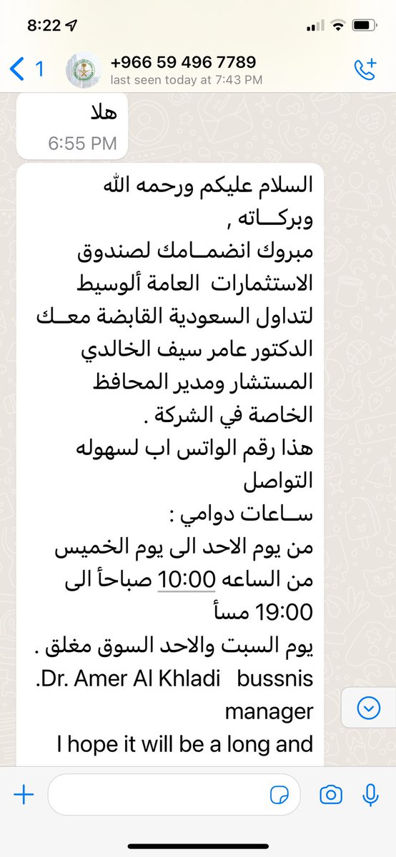 ٧/ بعد ذلك يتم التواصل مرارا وتكرارا عن طريق الواتس آب وعن طريق أرقام مختلفة تطلب مزيد من التحويلات وأن متغيرات السوق توعد بأن العائد في الفترة القادمة أفضل من أي وقت مضى وأنها فرصة لا تعوض. وهكذا.